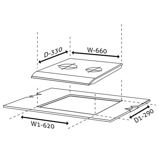 2 Burner Glass Hob Top with Double Ring Forged Brass Burners Auto Ignition (1022 SQ HT DB)