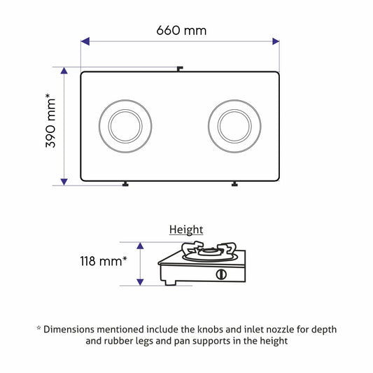 2 Burner Glass Gas Stove Junior with Brass Burner (1020 GTJU BB)
