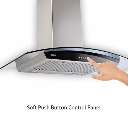 Kitchen Chimney Curved Glass, Push Buttons Baffle filter 90cm 1250 m3/h -Silver (6071 GF)