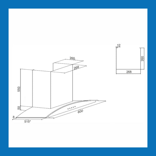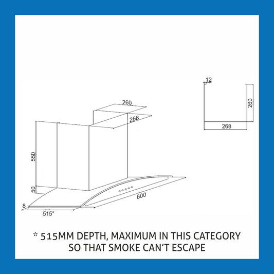 Kitchen Chimney Curved Glass, Push Buttons Baffle filter 60cm 1000 m3/h -Silver (6023 SX)