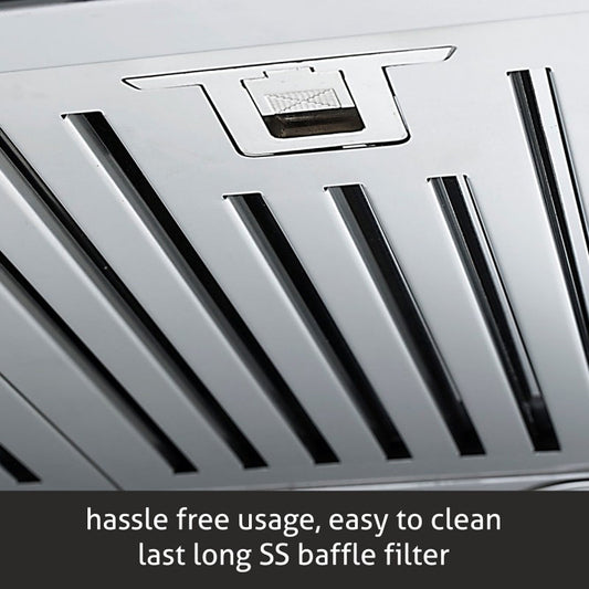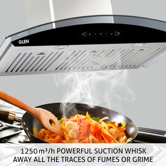 Kitchen Chimney Curved Glass with Touch Sensor Baffle filter 90cm 1250 m3/h - Silver (6071 TS)