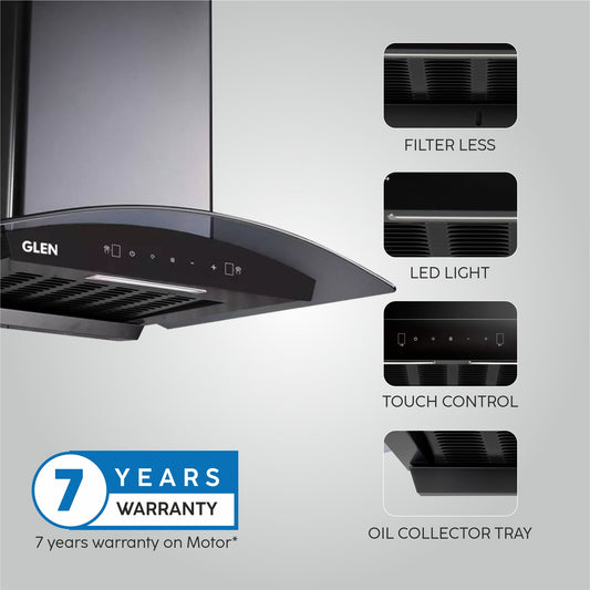 Auto Clean Curved Glass Filterless Kitchen Chimney with Motion Sensor 1200 m3/h (6060 BL AC 60/90cm)