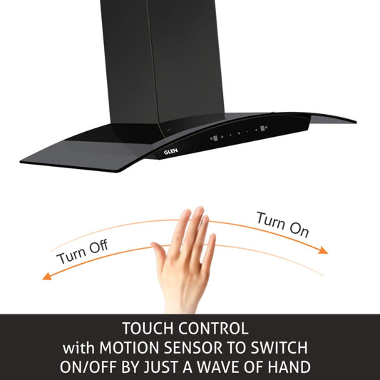 Auto Clean Slim Glass Filter less Kitchen Chimney with Motion Sensor 60/90cm, 1200 m3/h (6062 SLIM BL AC)