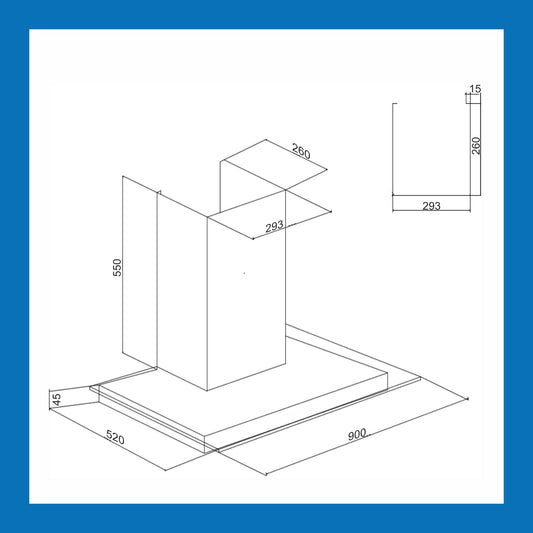 Designer Electric Kitchen Chimney Touch Control 90cm 1250 m3/h - Black (6062 TS BL)