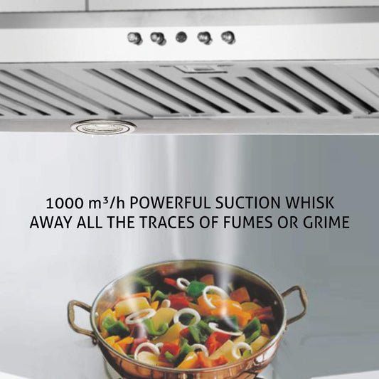 Designer Kitchen Chimney with Push Button Control Baffle filters 60cm 1000 m3/h - Silver (6062 SS)