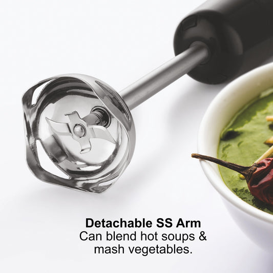 Electric Hand Blender 200W with Stainless Steel Arm, ISI - Black (4049 LX)