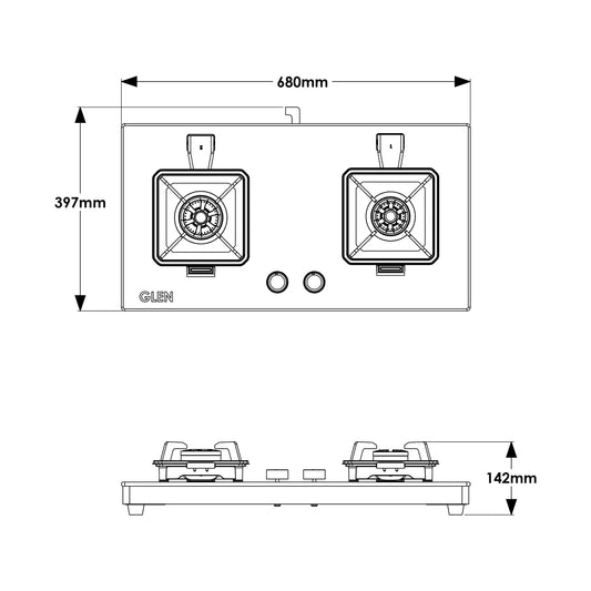 GLEN 2 Burner Swift Glass Gas Stove with Multi Ring Forged Brass Burners (CT1022GTBLSWIFT)