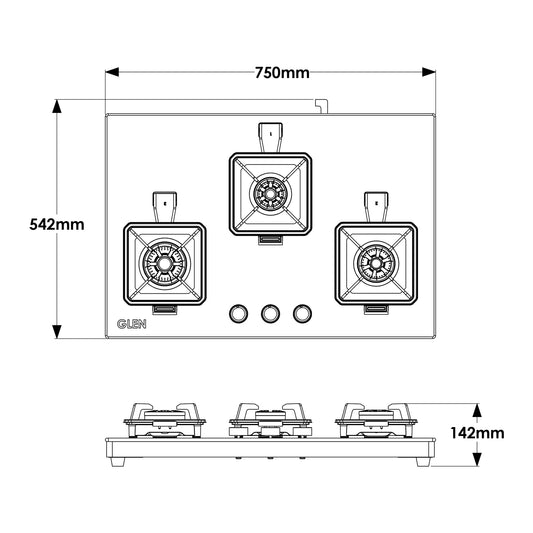 GLEN 3 Burner LPG Glass Gas Stove with Brass Burner (CT1031GTEX)