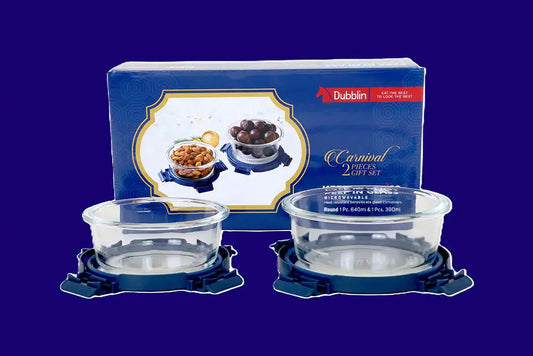 DUBBLIN Carnival 2 Pcs gift set | Oven Safe | Premium Round Glass Containers | Gift Set | Borosilicate Containers (1 x 640 ml, 1 x 390 ml)