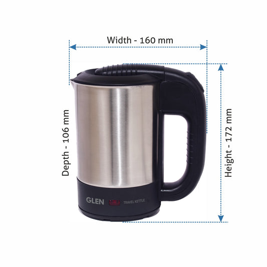 Electric Travel Kettle 0.5 Litre Stainless Steel 2 Plastic cups, Auto Shut-off 1000 W -Silver and Black (9013)