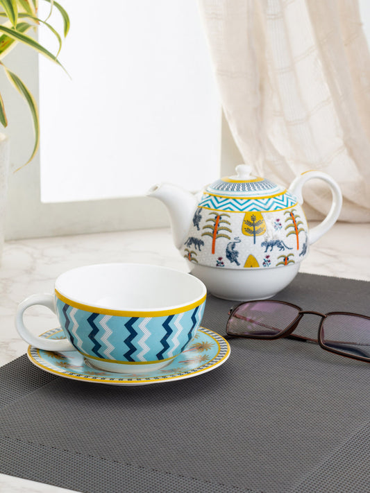 Claycraft India Circus Mystical Gardens Tea for One Set of 3 (1 Teapot, 1 Cup and 1 Saucer)