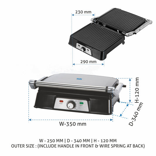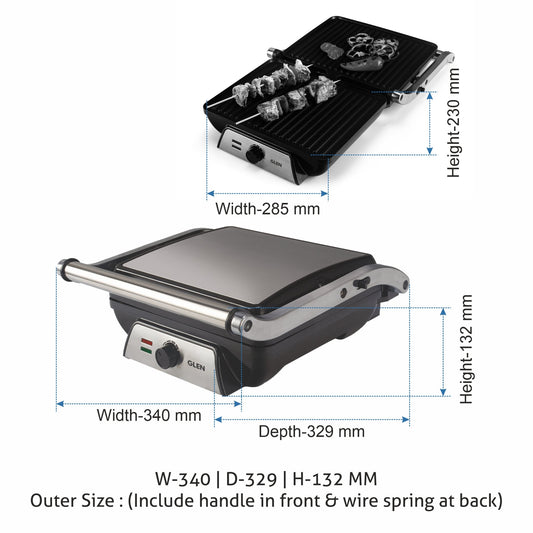 Electric Contact Grill & Sandwich Maker with 180-degree opening, Non-Stick Plates, 2000w - Silver (3037)
