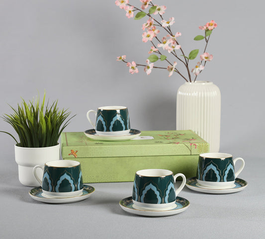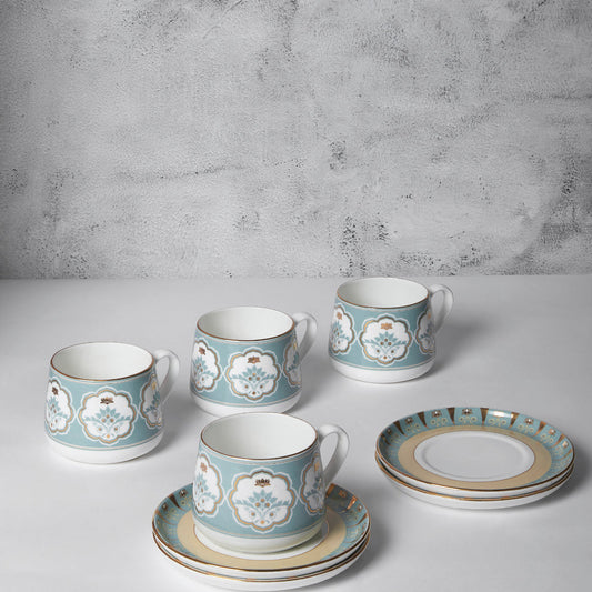 Claycraft India Circus Regal Romance Cup and Saucer Set of 8 | 22k Gold Accents (280ml)