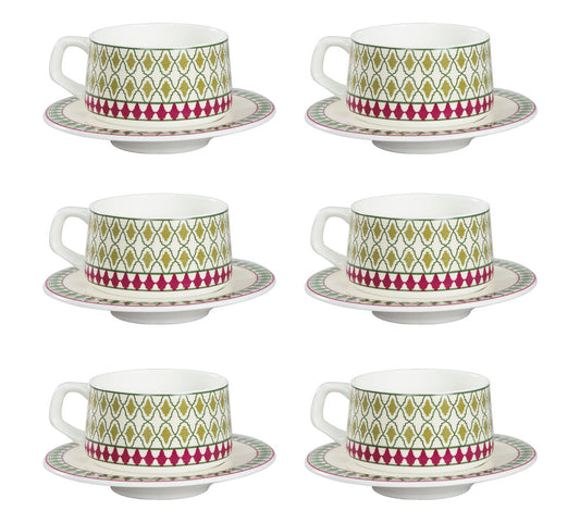 Claycraft India Circus Floral Fountain Cup & Saucer Set of 12 (6 Cups + 6 Saucer) | 22k Gold Accents (180ml)