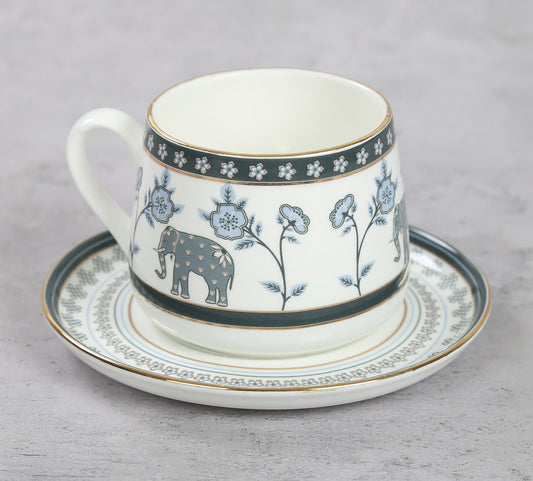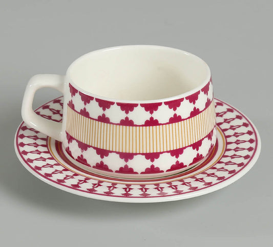 Claycraft India Circus Floral Fountain Cup & Saucer Set of 12 (6 Cups + 6 Saucer) | 22k Gold Accents (226ml)