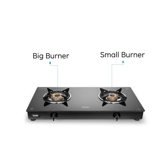 GLEN 2 Burner Glass Gas Stove Jumbo with Brass Burner Black (CT1020GTJMBB)
