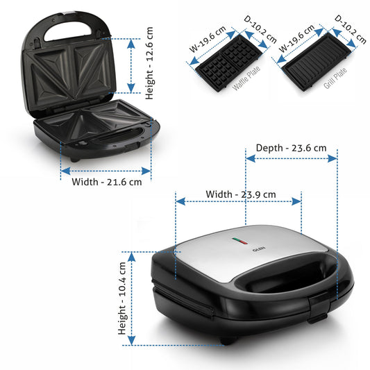 Electric Multi Snack Maker with 3 sets of Sandwich, Grill & Waffle Non-Stick Plates, 750w - Black (3022 MSM)