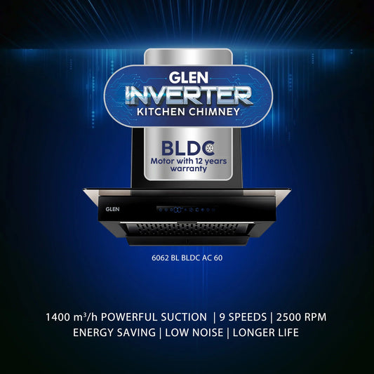 Auto Clean Glass Chimney with Inverter Technology, BLDC Motor 60/90cm 1400 m3/h (6062 BLDC AC )