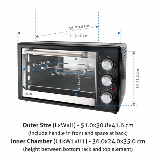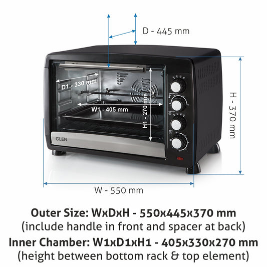 GLEN 35L Oven Toaster Griller (OTG) | Convection Fan & motorized Rotisserie | 2100W OTG – Black (SA5035BLRC)