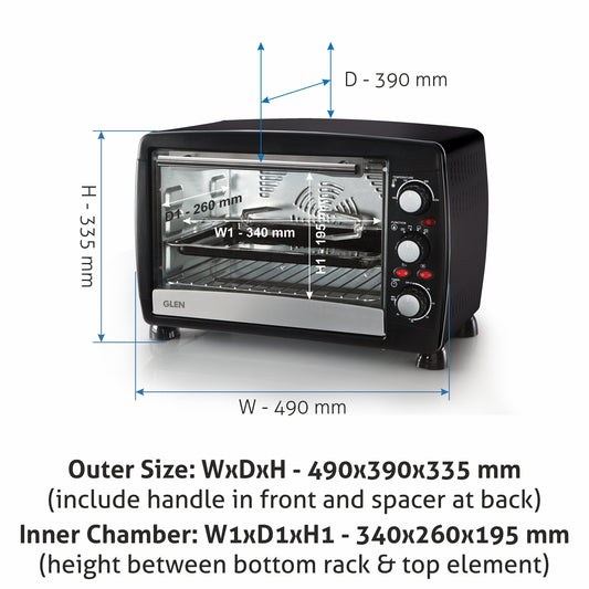 GLEN Oven Toaster Griller (OTG) - 18 Litres | Upper & Lower Heating 60 minute timer 1200W - Black (SA5018)