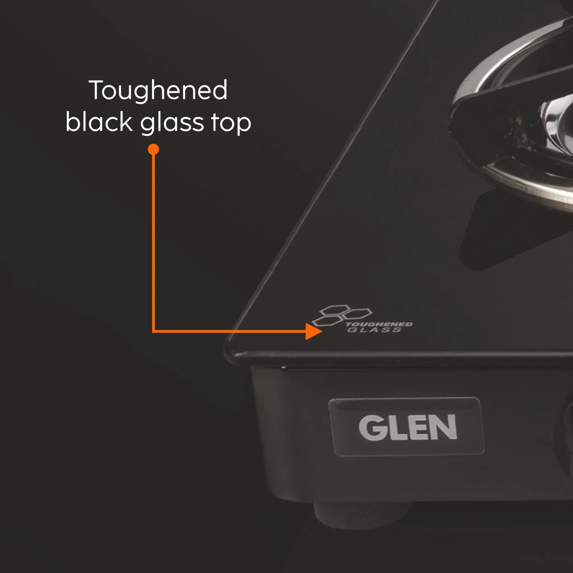 3 Burner Glass Gas Stove with Brass Burner Black (1037 GT BB BL)