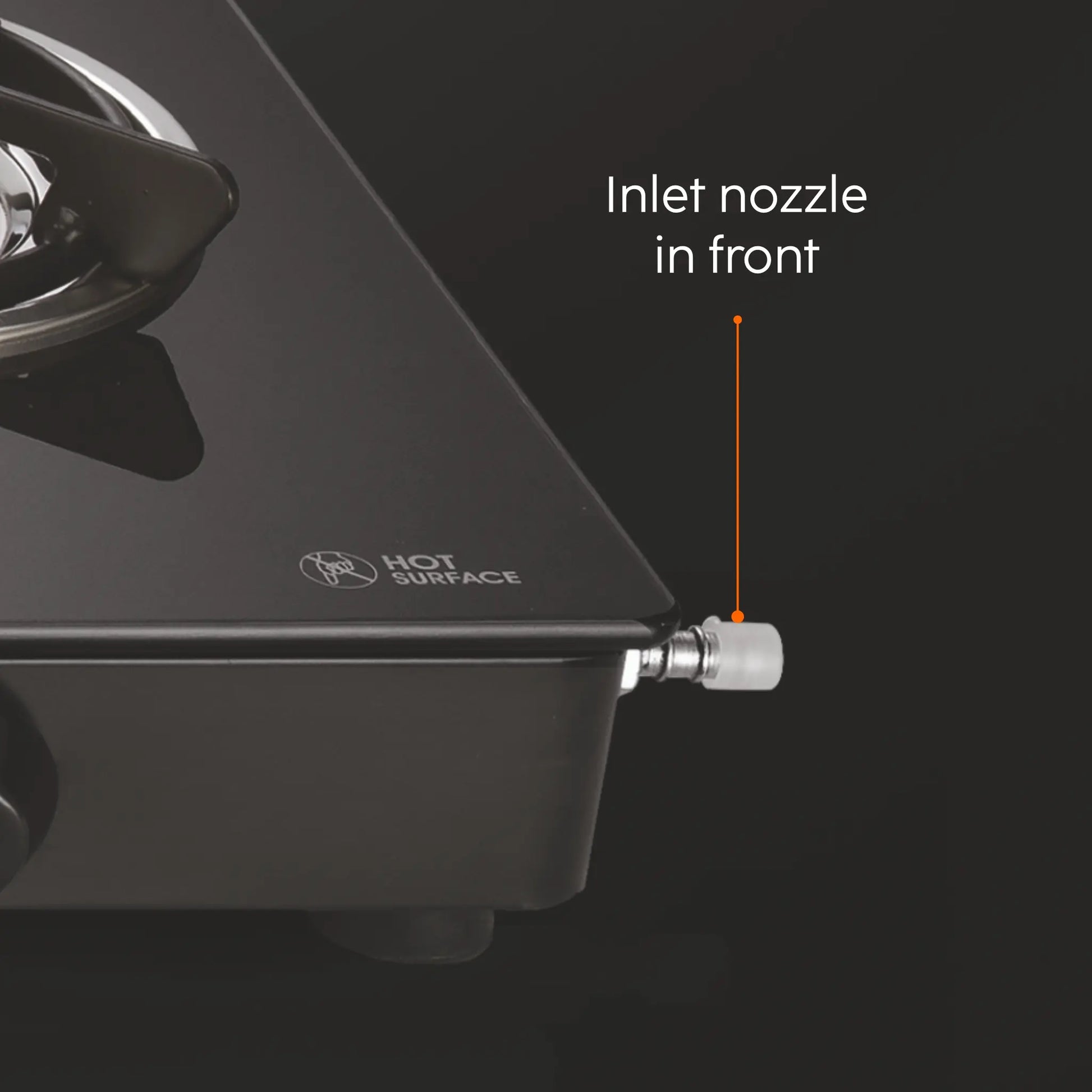 A manual operated gas stove equipped with 3 Different Fuel Efficient brass burners:B 2 Big and 1 Small Burner for diverse cooking requirements.