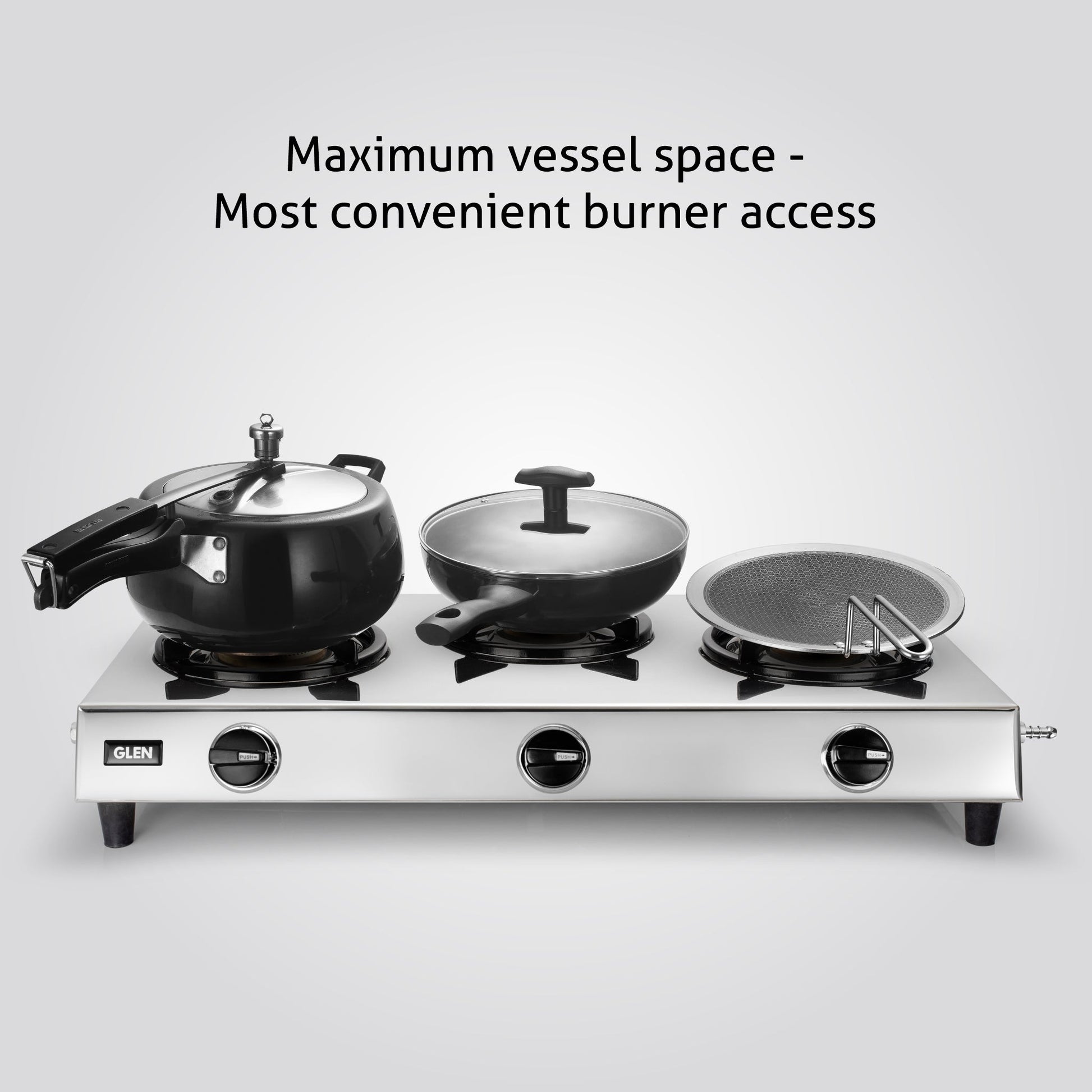 3 Burner Stainless Steel Gas Stove with High Flame Brass Burner (1031 XL SS HF BB)