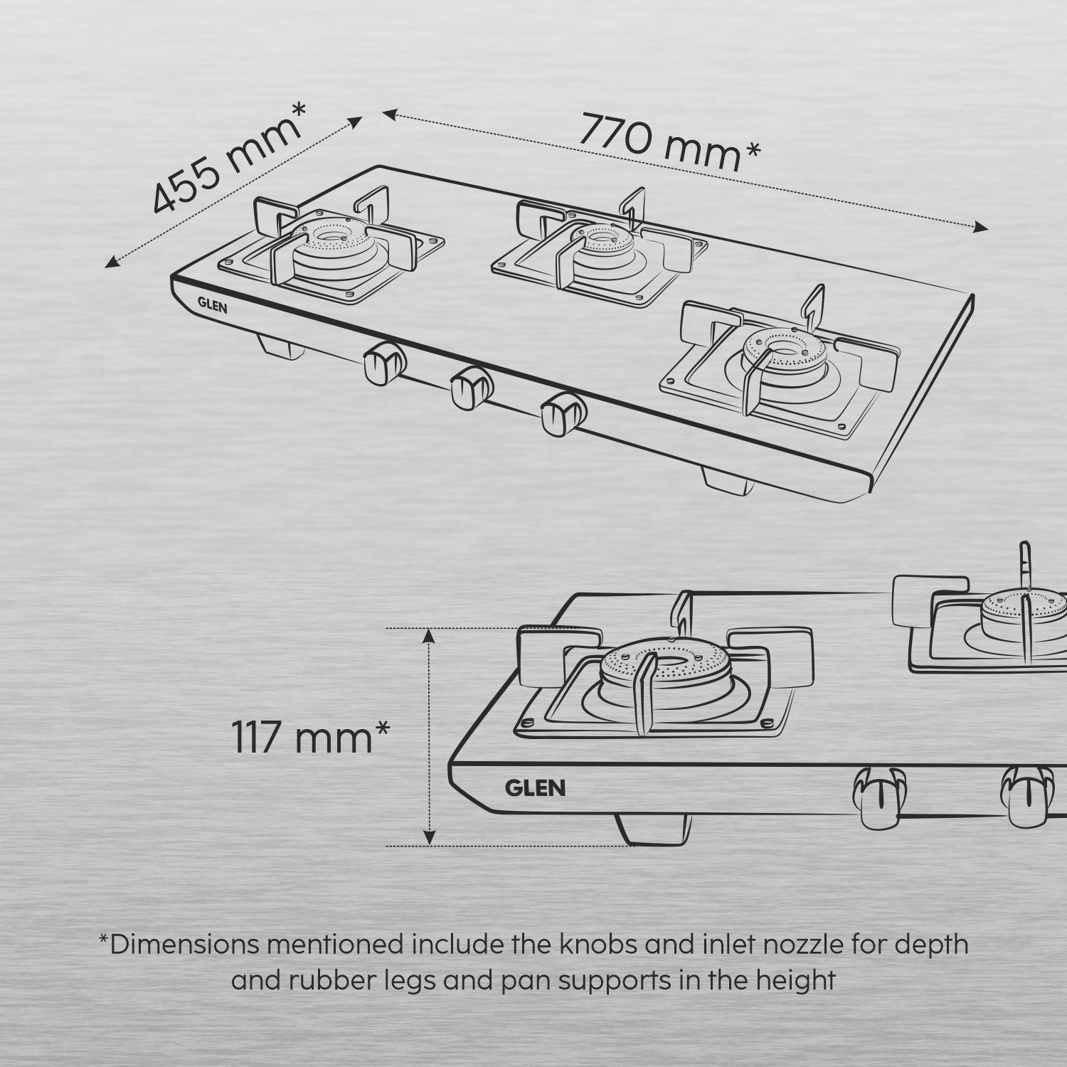 3 Burner Ultra Tuff Stainless Steel Gas Stove with Forged Brass Burner - Manual/Auto Ignition (1053 UT SS)