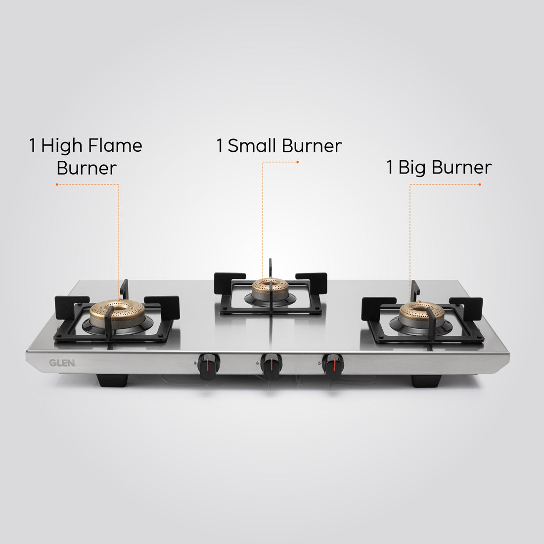 3 Burner Ultra Tuff Stainless Steel Gas Stove with Forged Brass Burner - Manual/Auto Ignition (1053 UT SS 73)