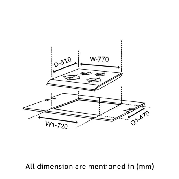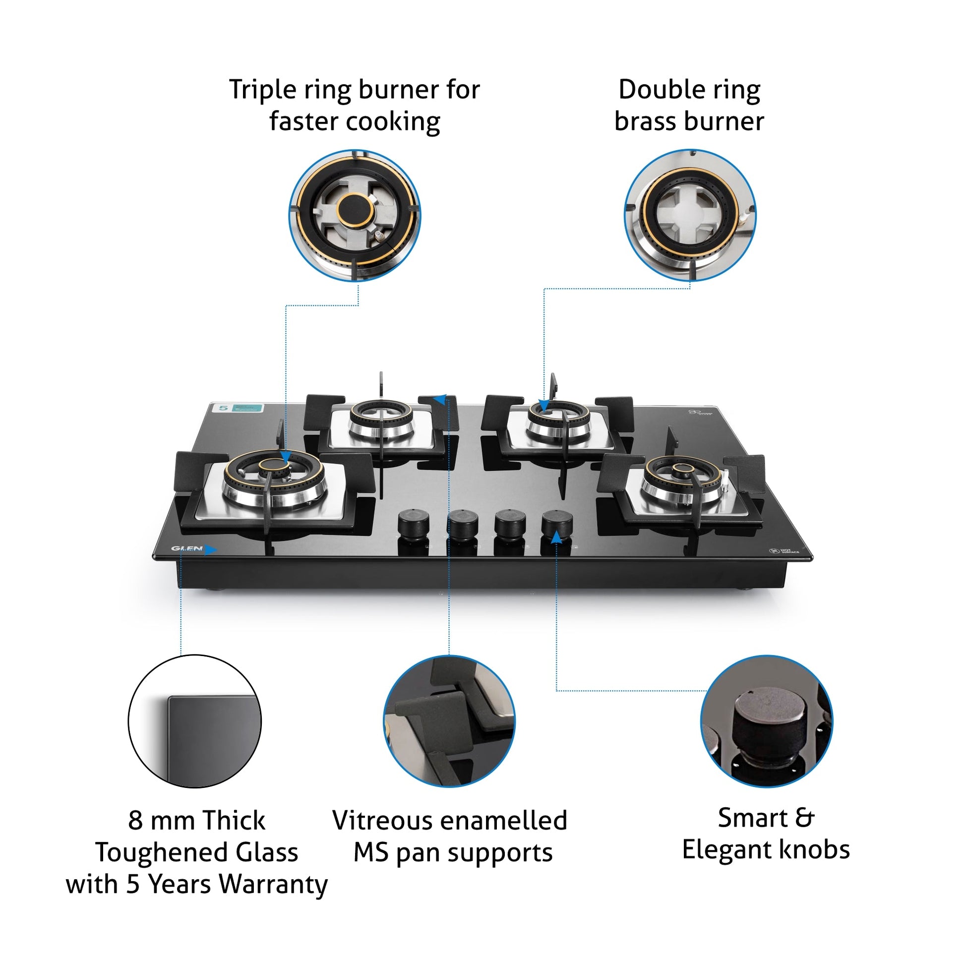 4 Burner Glass Gas Hob Top Triple Ring Burners Double Ring Forged Brass Burner Auto Ignition (1074SQHT2TR)