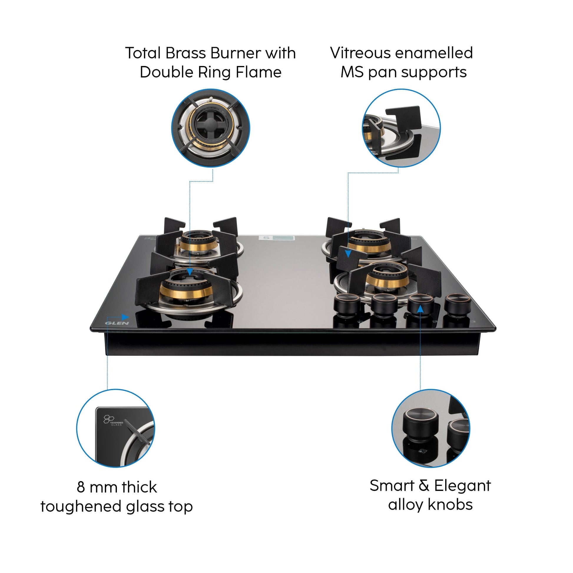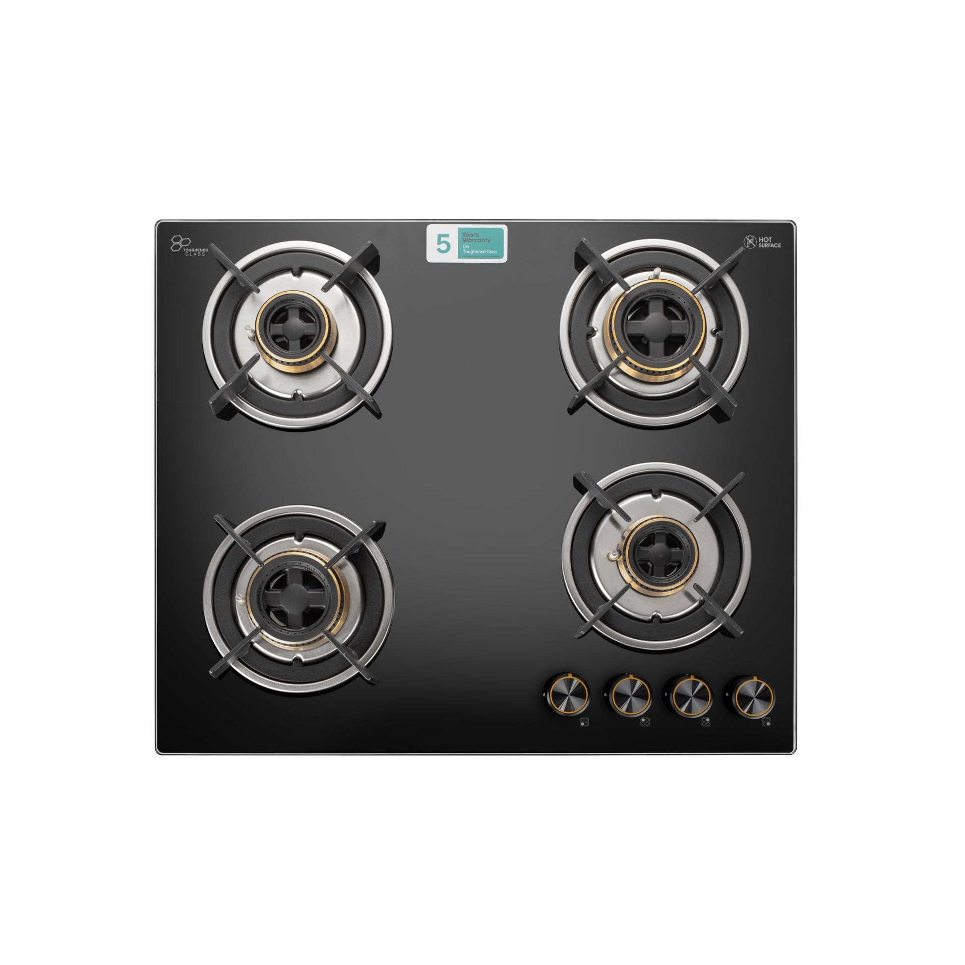 4 Burner Glass Hob Top with Total Brass Burners Auto Ignition (1064 RO HT TDB)