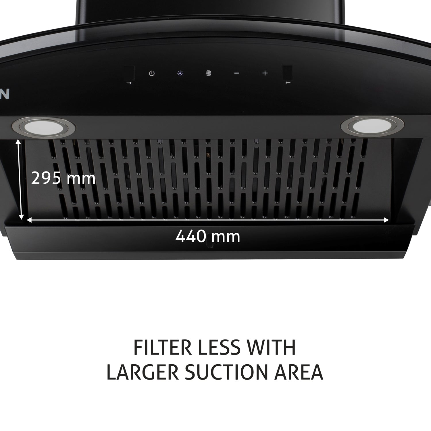 Auto Clean Chimney Curved Glass Filterless with Motion Sensor, 60/76/90cm 1200 mB3/h -Black (6080 BL MS AC)