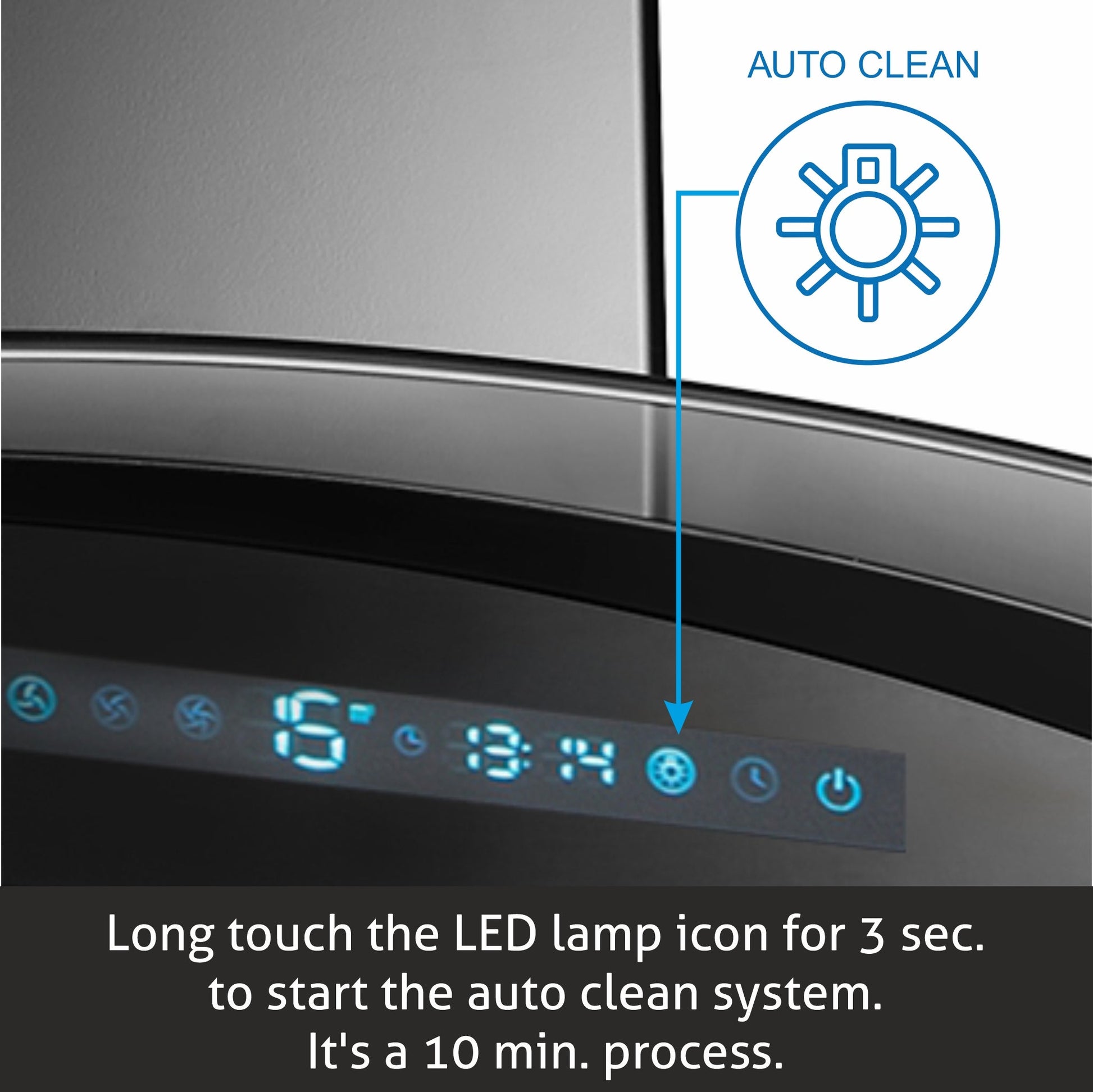 Auto Clean Curved Glass Chimney with Inverter Technology, BLDC Motor 1400 mB3/h - 60/76/90cm (6067 AC BL)