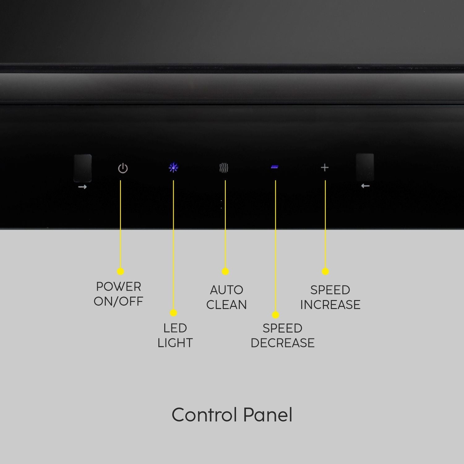 Auto Clean Slim Glass Filter less Kitchen Chimney with Motion Sensor 60/90cm, 1200 m3/h (6062 SLIM BL AC)