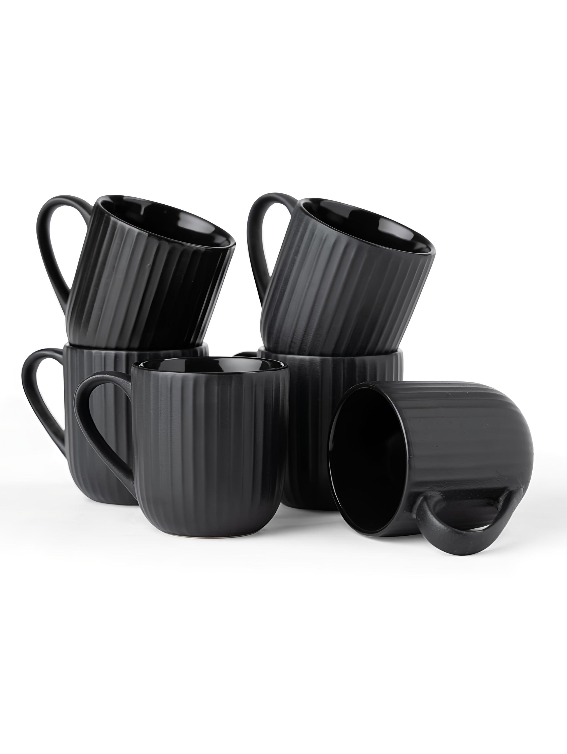 Claycraft Linea Pebble Black Coffee & Tea Mugs Set of 6 (250 ml)