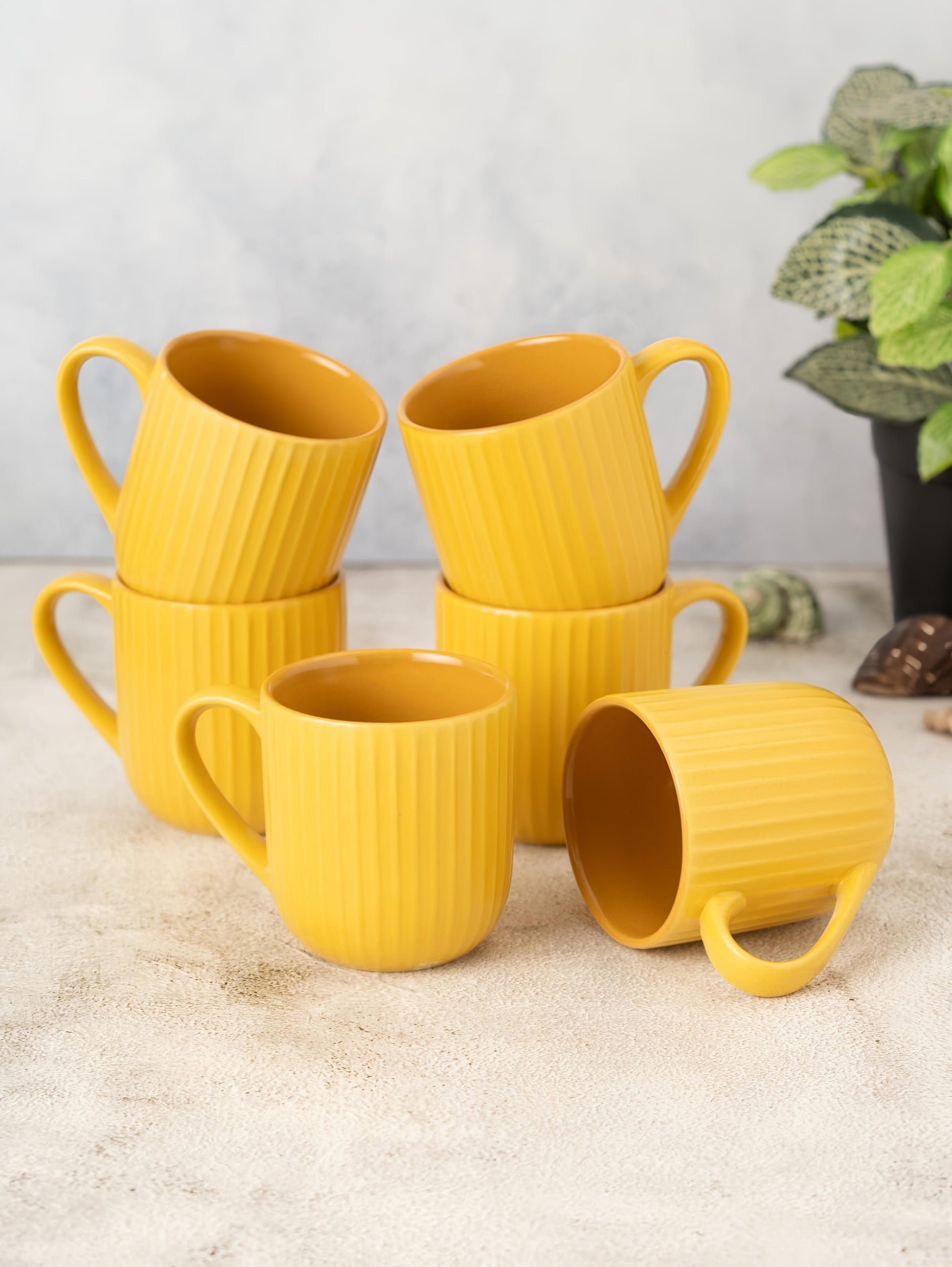 Claycraft Linea Pebble Mustard Coffee & Tea Mugs Set of 6 (250 ml)