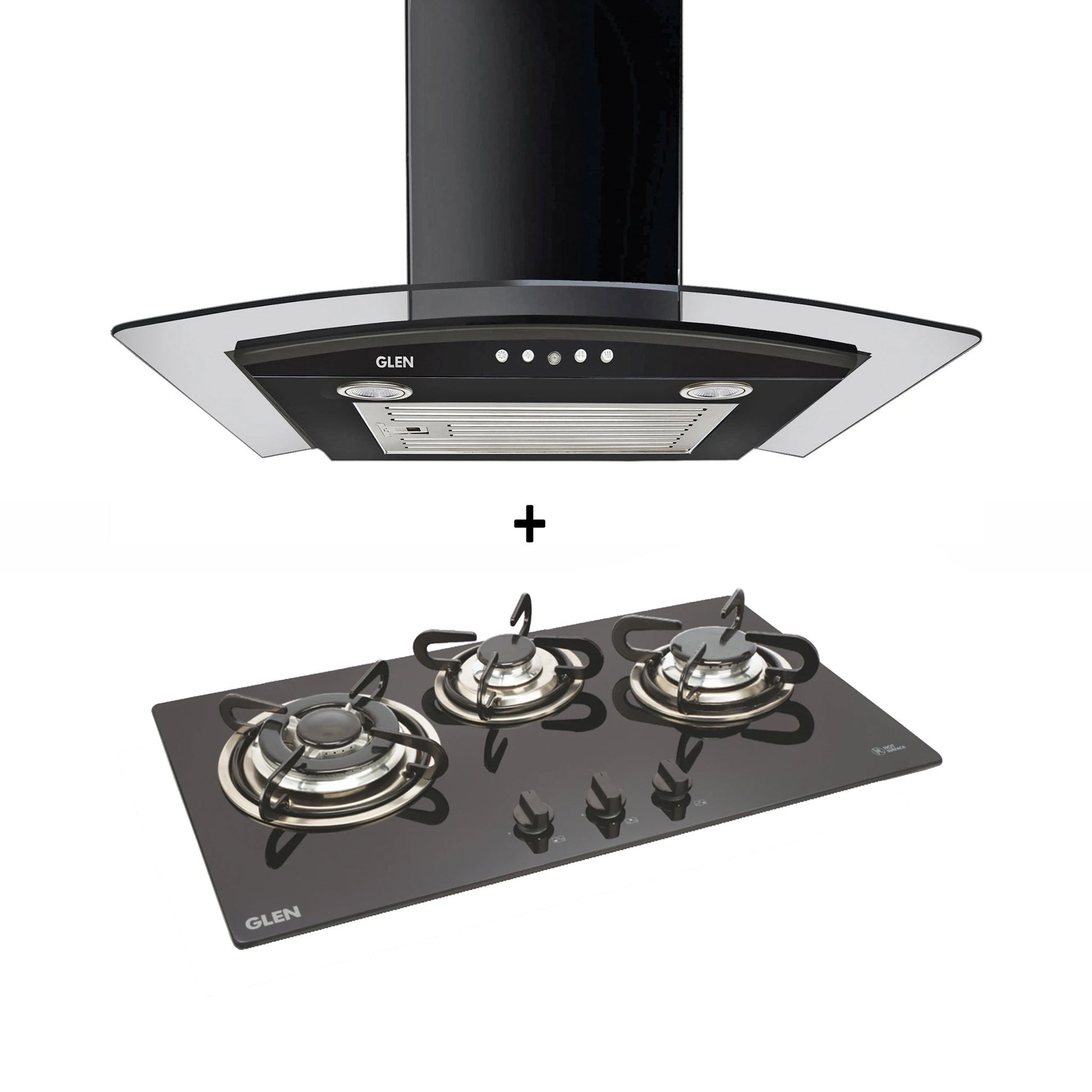 3 Burner Built in Glass Hob (1073 TR) + Chimney 60cm Baffle Filter 1000m3h (6070 JU BL)