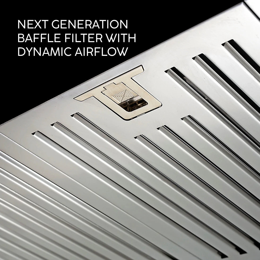 The Glen 6001 Straight-line Chimney is a classic straight line hood. This chimney can be used in recirculation mode with carbon filters. It can be fitted against the wall or directly below the cabinet above the hob. It comes with bi-rotational technology.