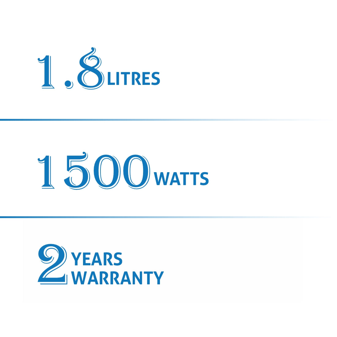 The Glen electric kettle 9005 allows full control with a single push button operation. Its compact shape makes it fit on your shelf or table. Having white body with stainless steel finish, it is easy to clean and stable in resting. The 360B0 rotational base allows to place the kettle on the base to face in the direction most convenient to you. The well positioned handle ensures easy hold while pouring. Having light indicator, this kettle boils water quickly with less hassles.