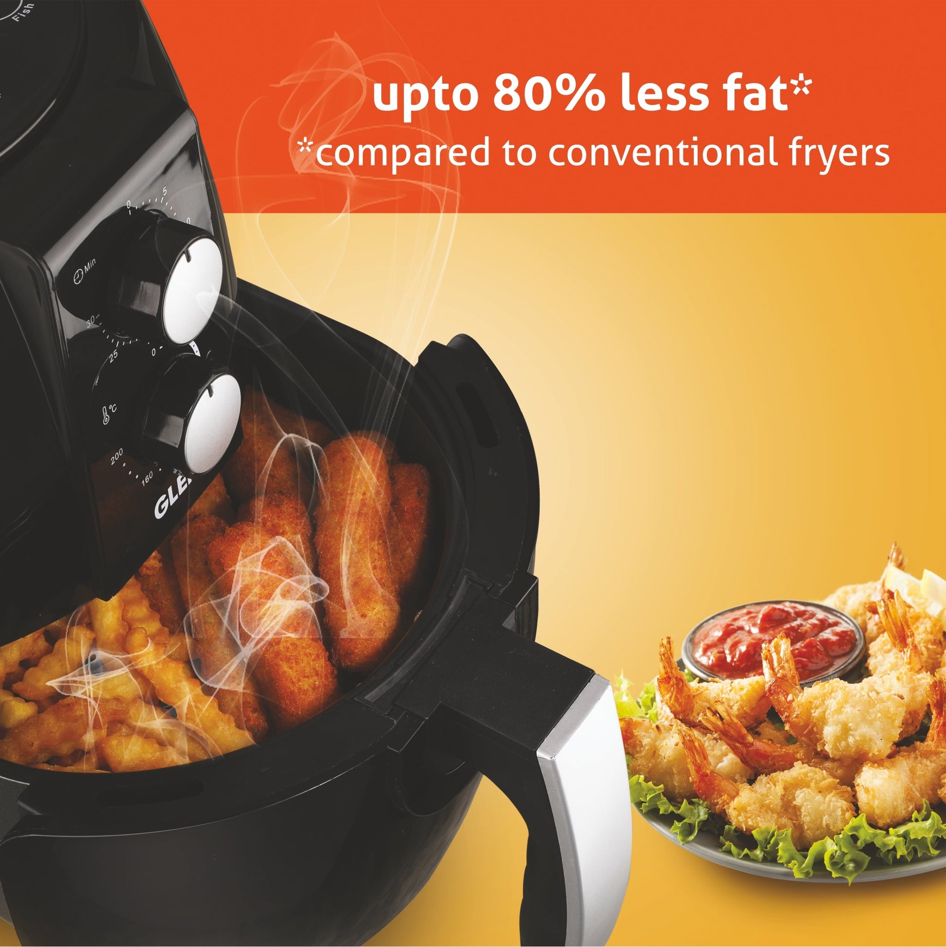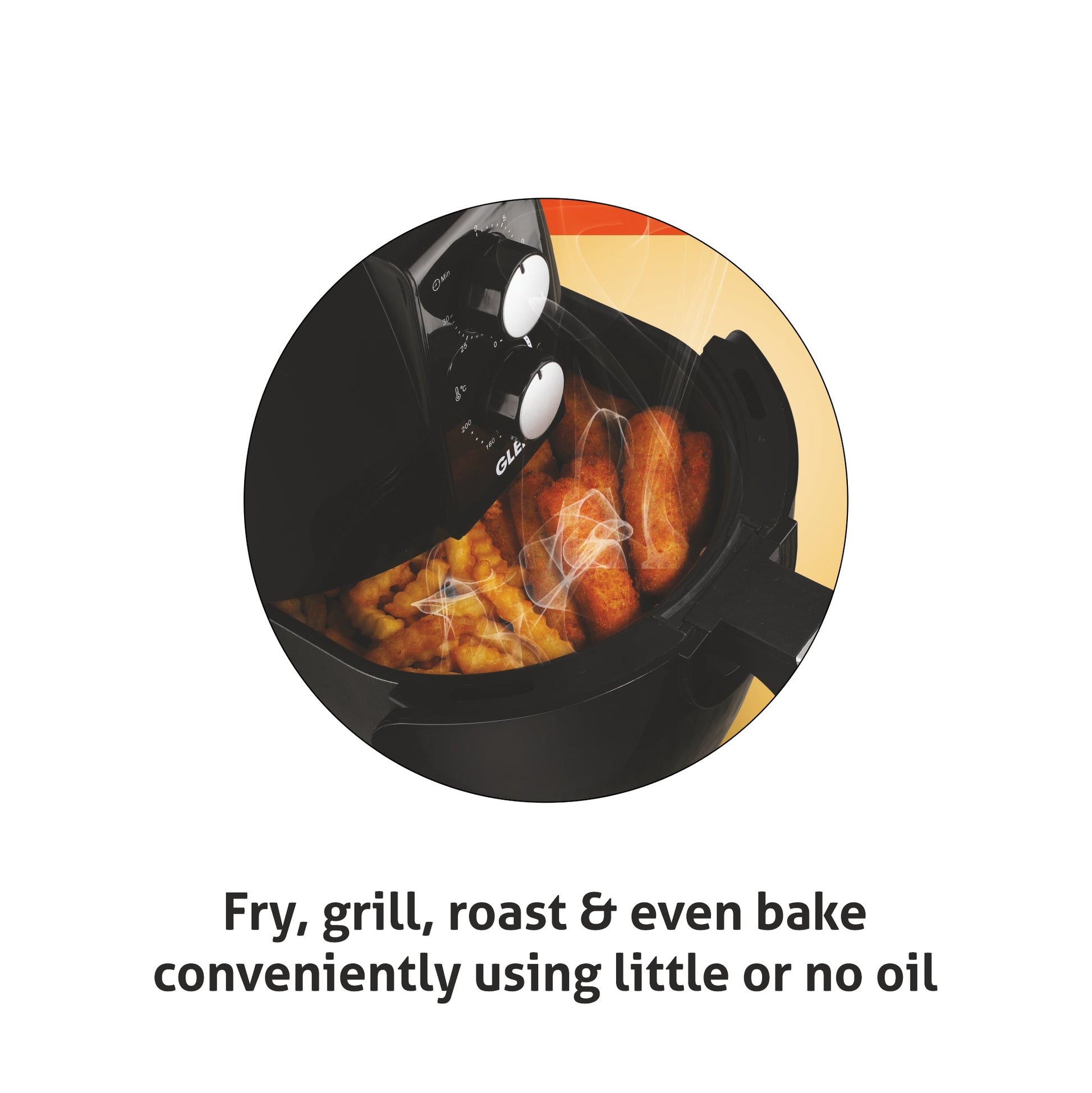 The Glen 3048 Electric Rapid Fryer Black is a healthy alternative to prepare deep fried foods. It allows frying, baking, grilling & roasting conveniently using little or no oil. It comes with detachable frying basket chamber made of PBT and powerful motor for swift circulation of hot air. It has adjustable time & temperature control for best results.B