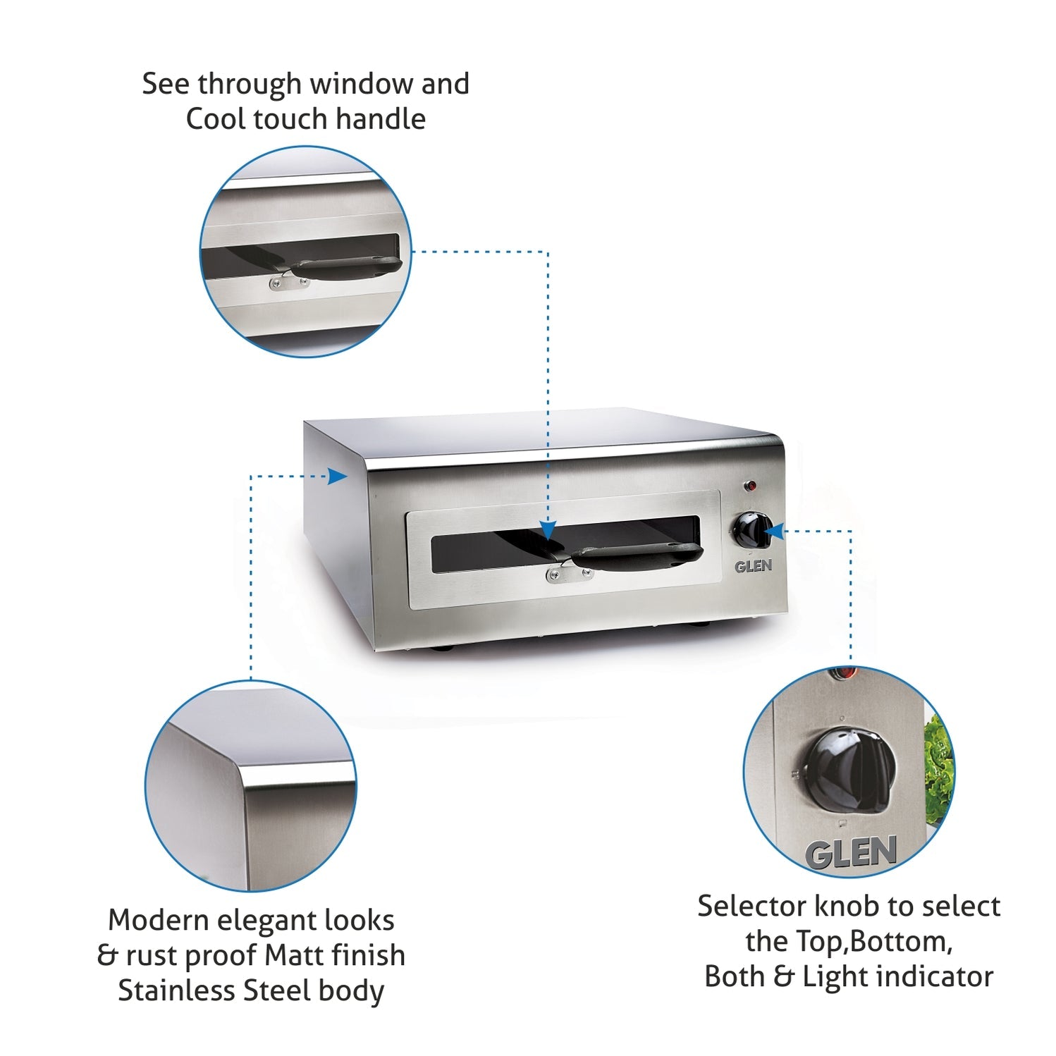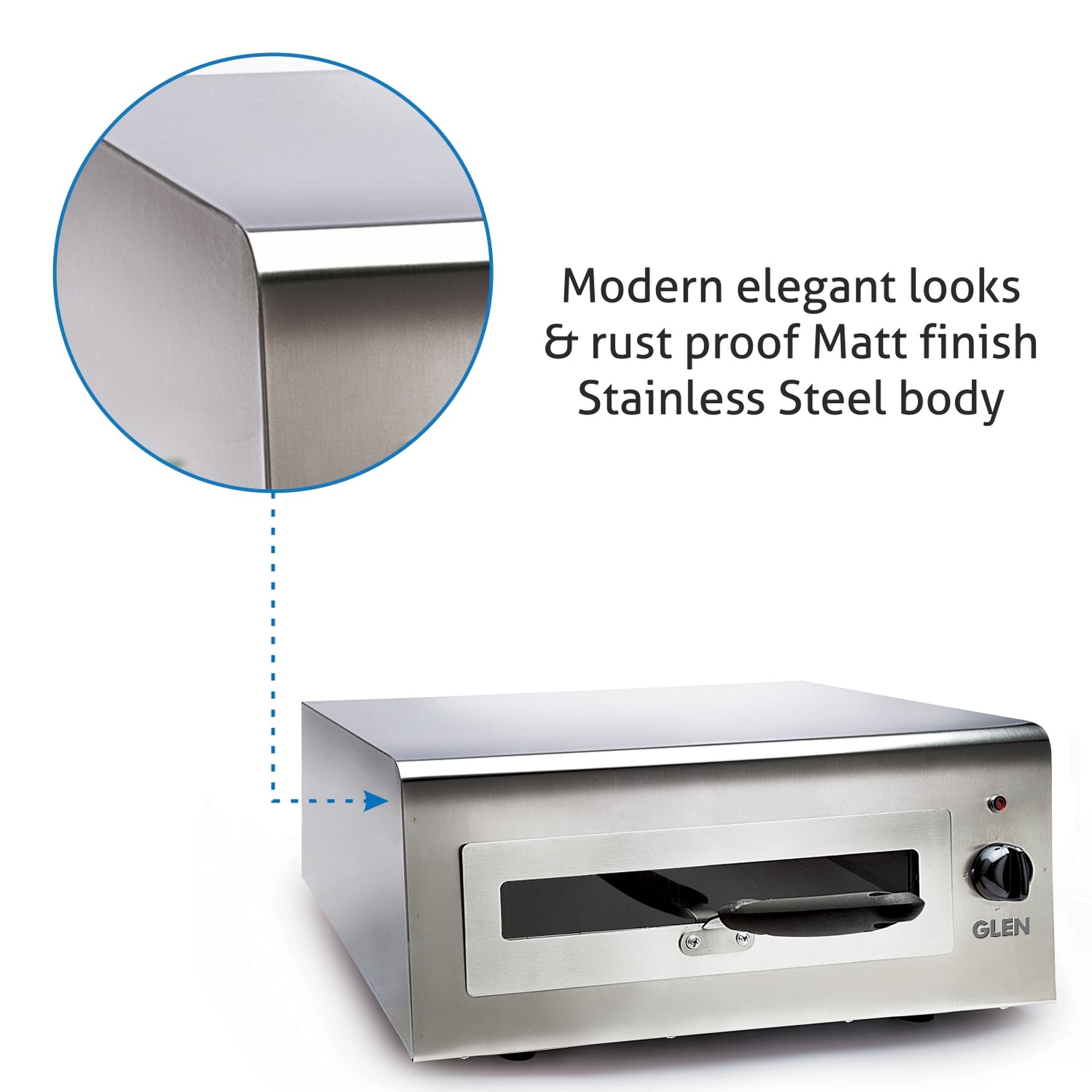 GLEN 1400W Electric Tandoor & Grill | Extra Large Capacity | Matt Finish Stainless Steel Body | Ideal for Baking, Roasting, Toasting & Grilling – Silver (5014 XL)