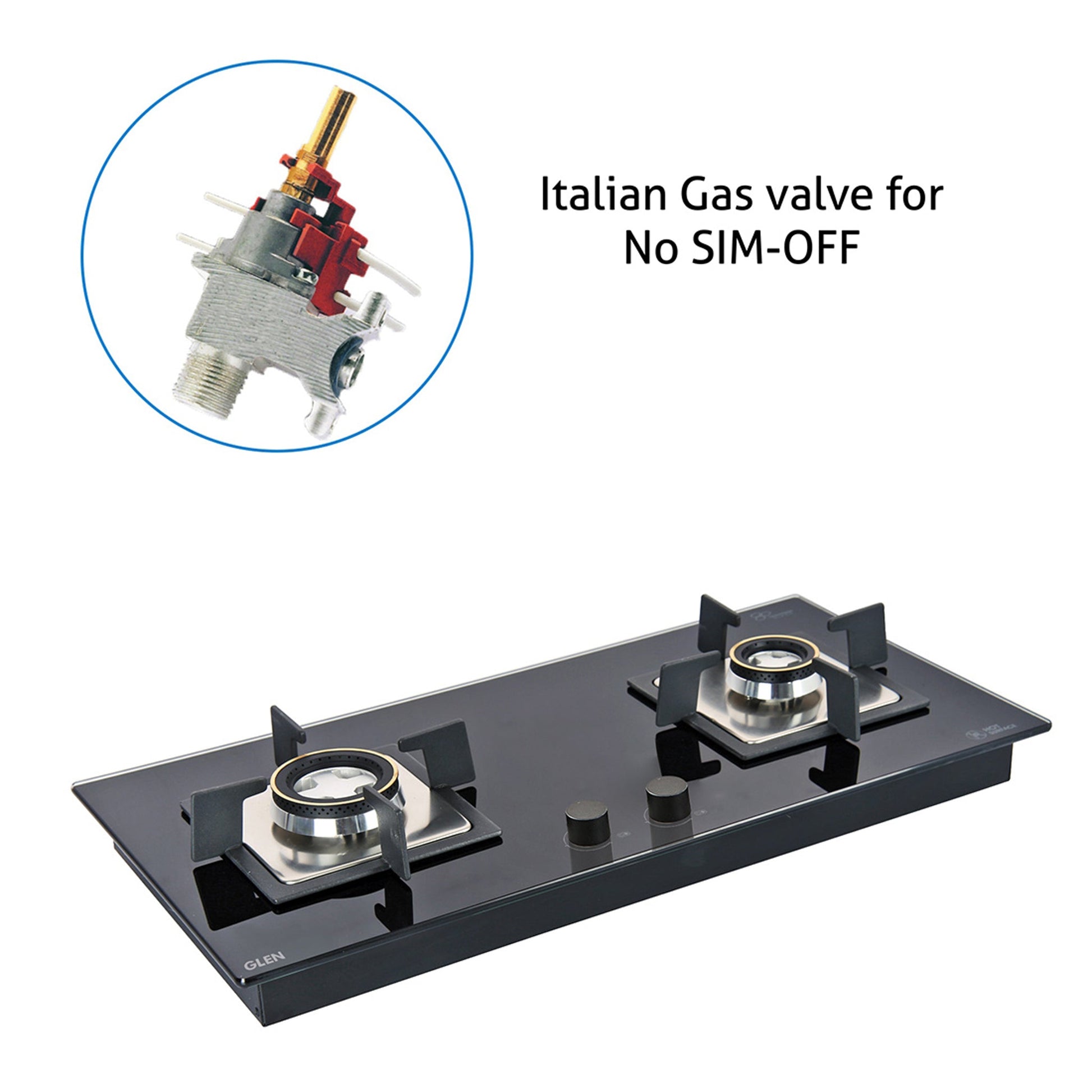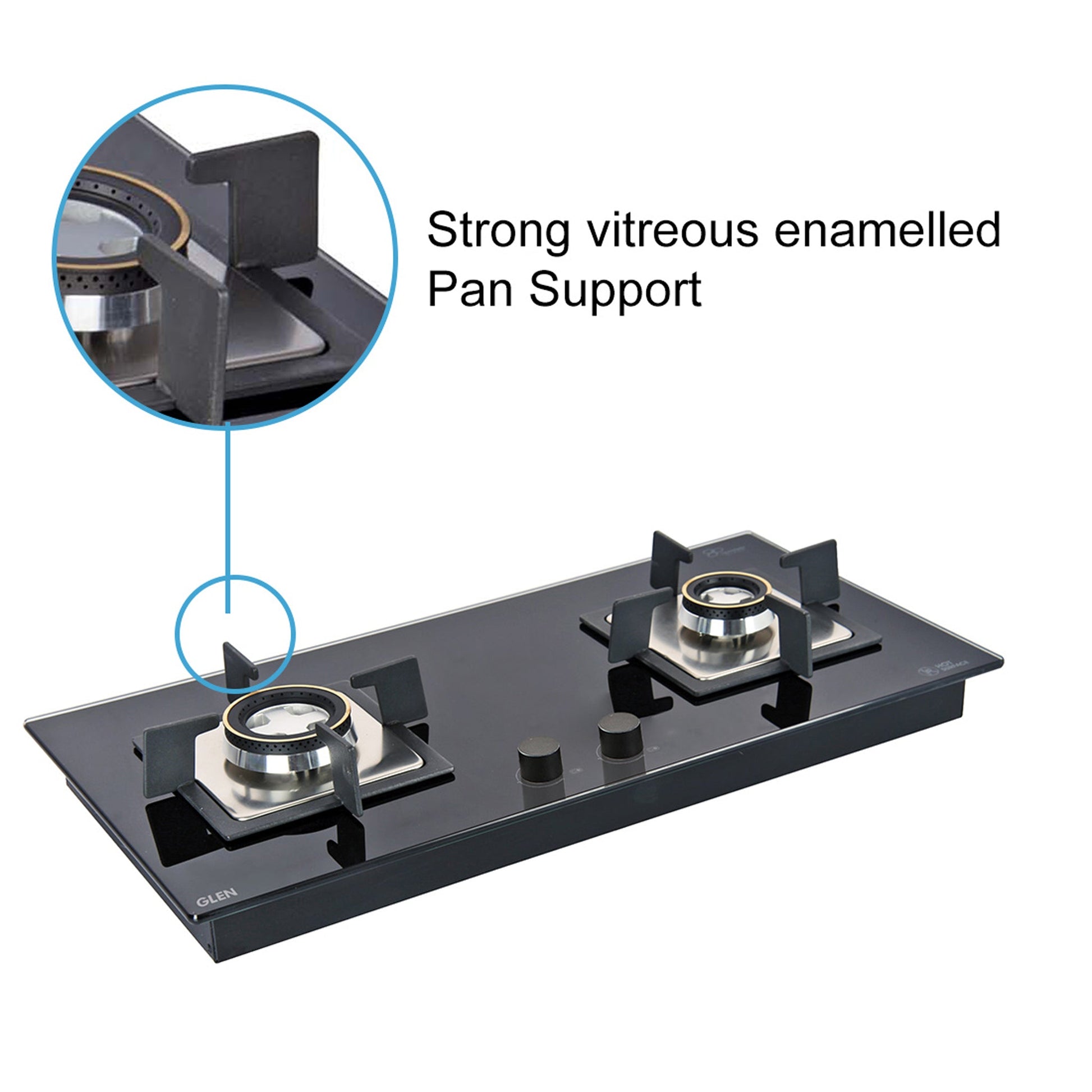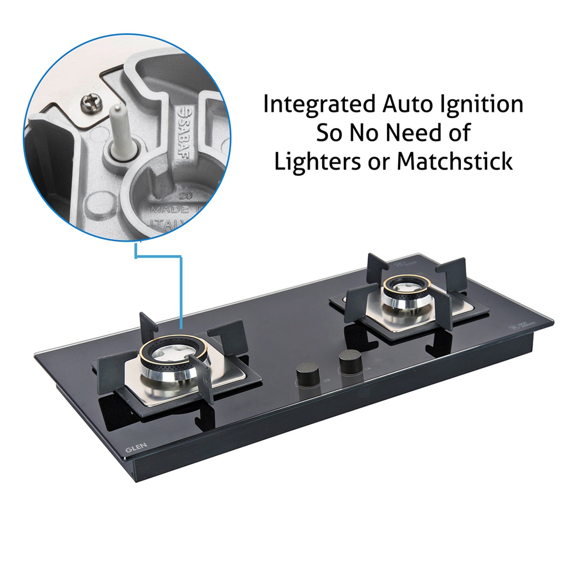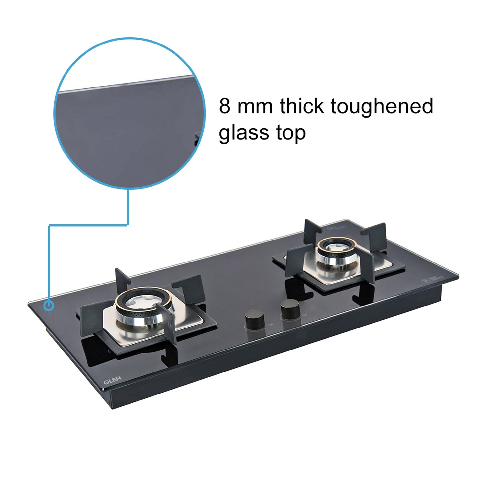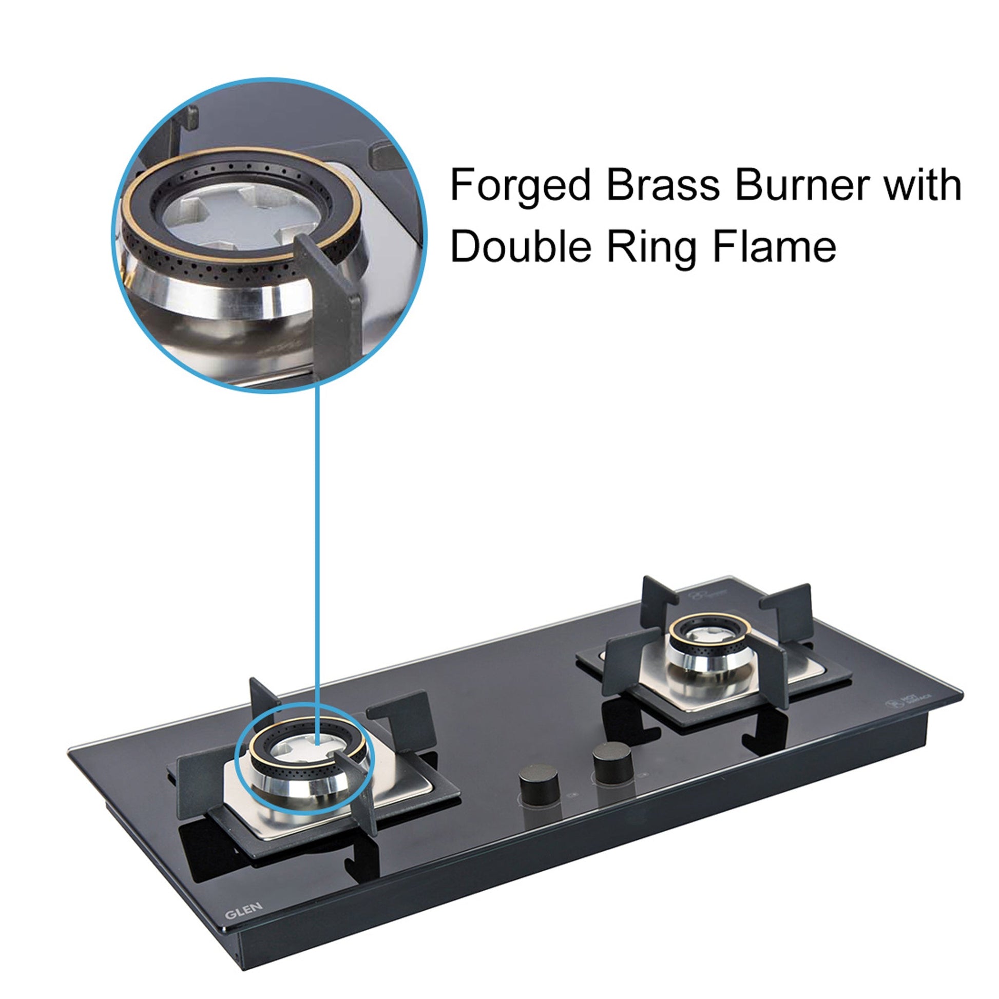 2 Burner Glass Hob Top with Double Ring Forged Brass Burners Auto Ignition (1022 SQ HT DB)
