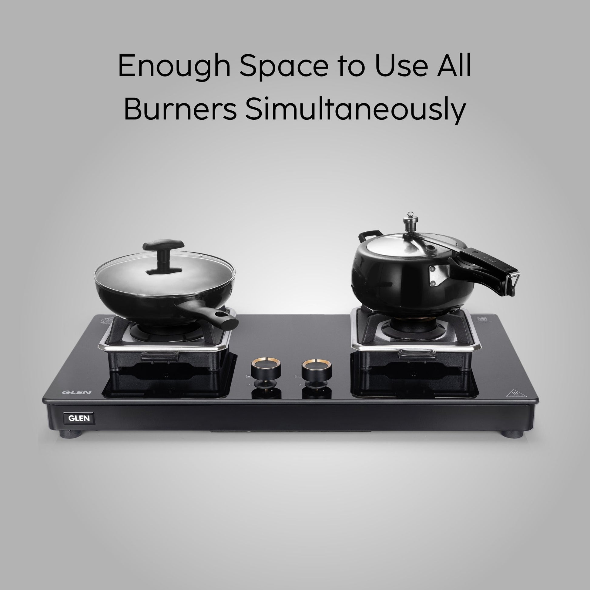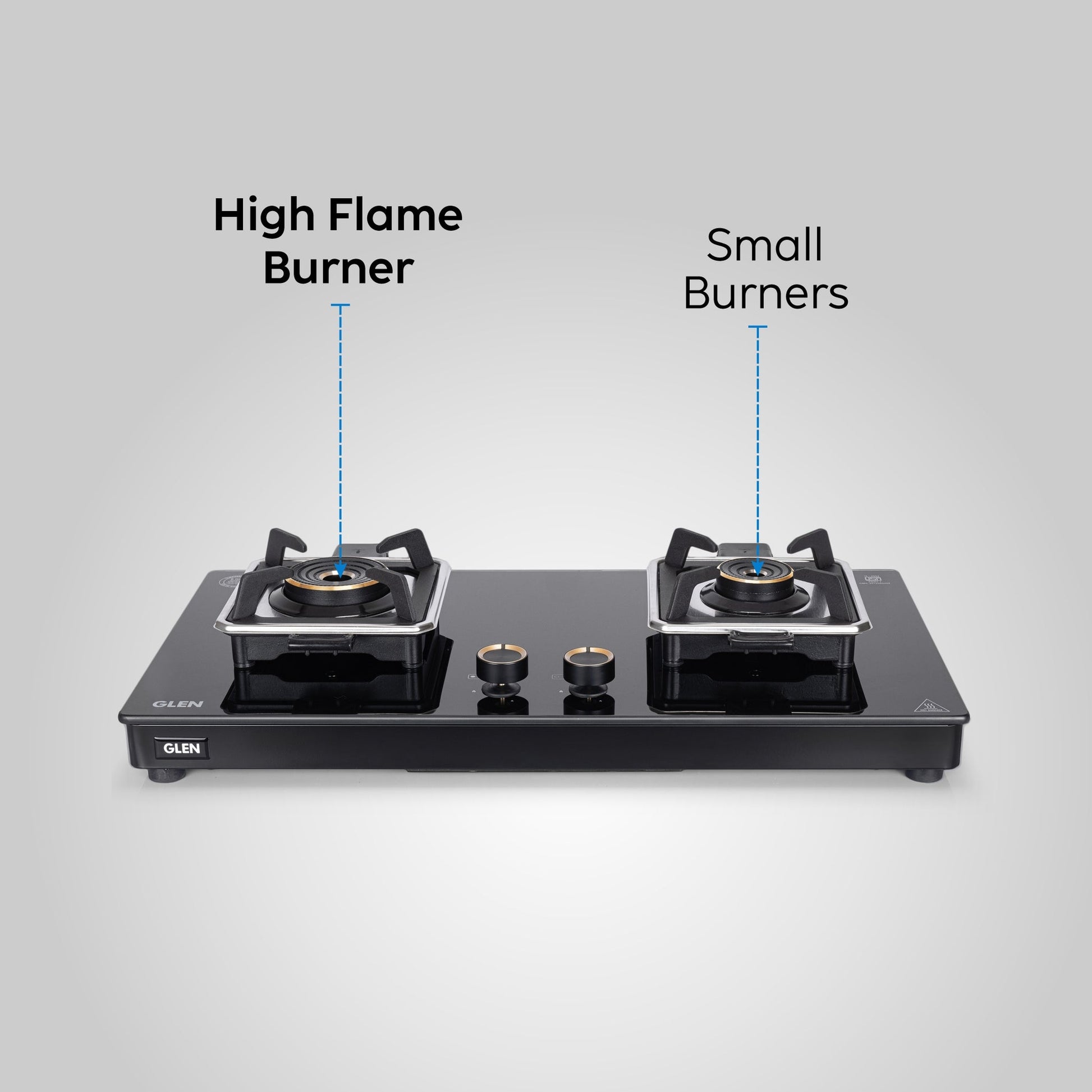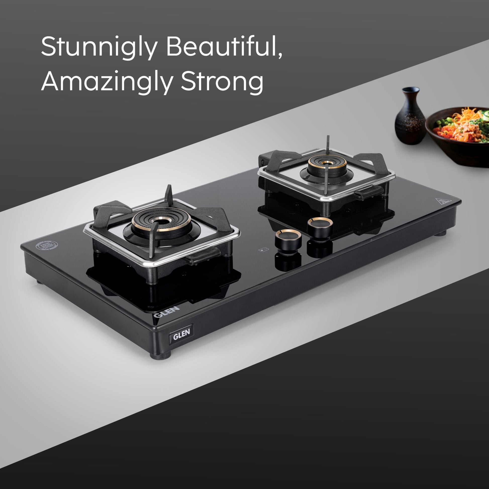 GLEN 2 Burner Swift Glass Gas Stove with Multi Ring Forged Brass Burners (CT1022GTBLSWIFT)
