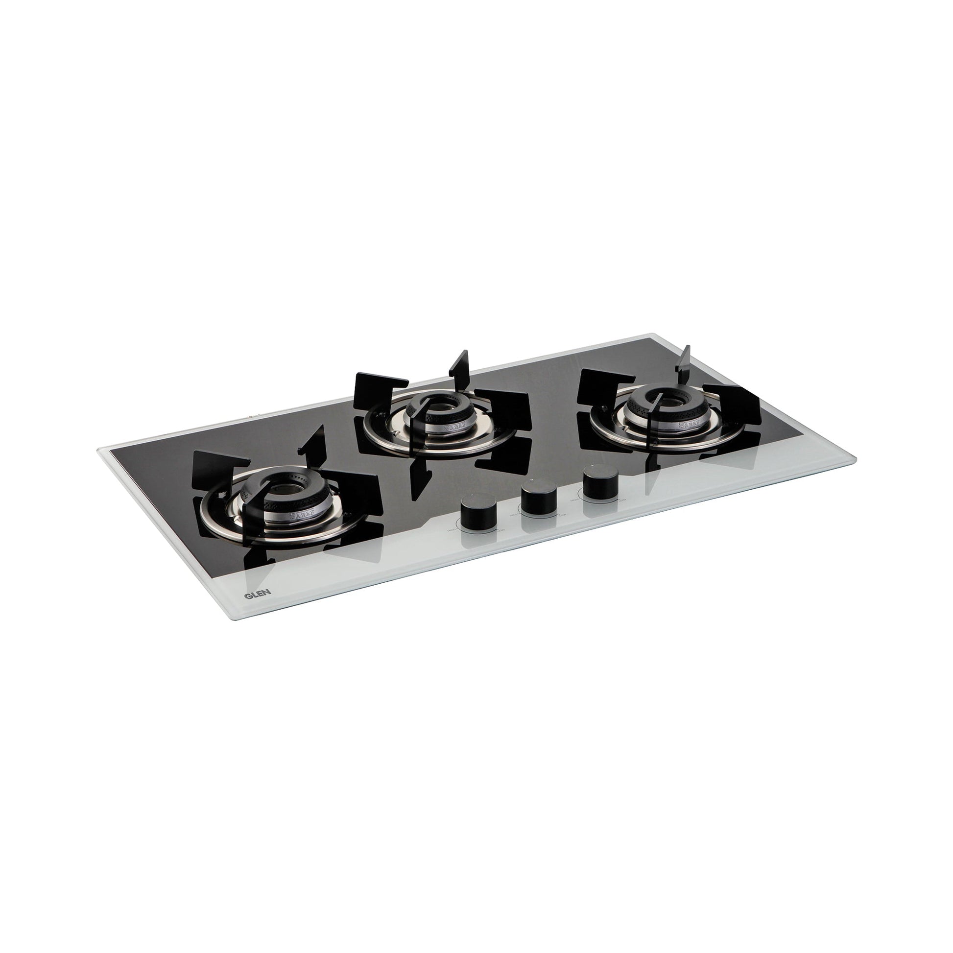 3 Burner Built In Glass Hob with Italian Double Ring Burners Auto Ignition (1073 IN BW)