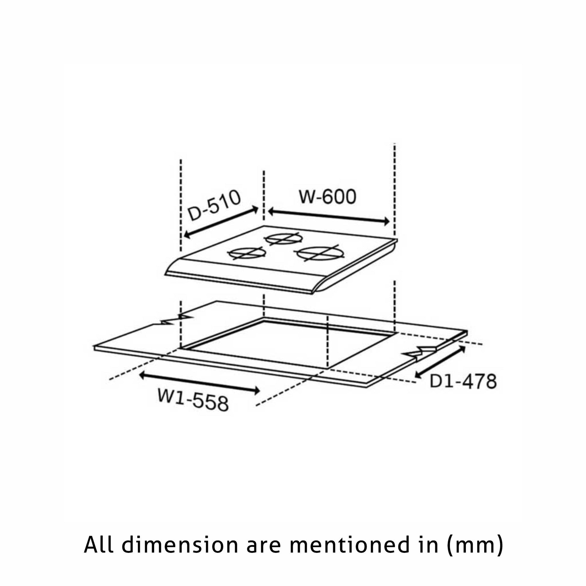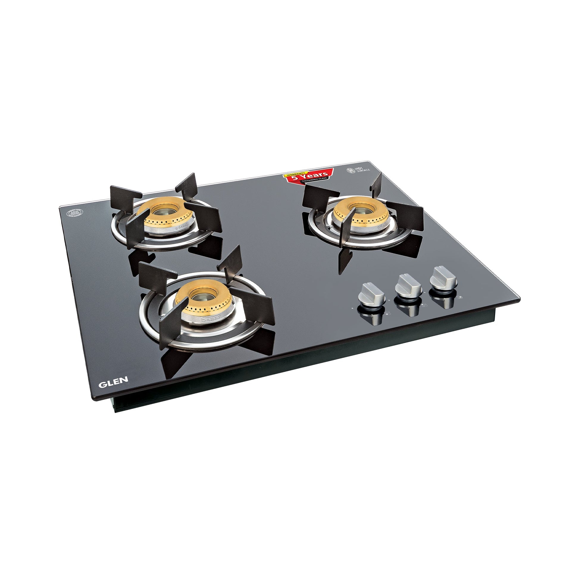 3 Burner Glass Hob Top with Italian Double Ring Brass Burners Auto Ignition (1063 RO IN HT BB)
