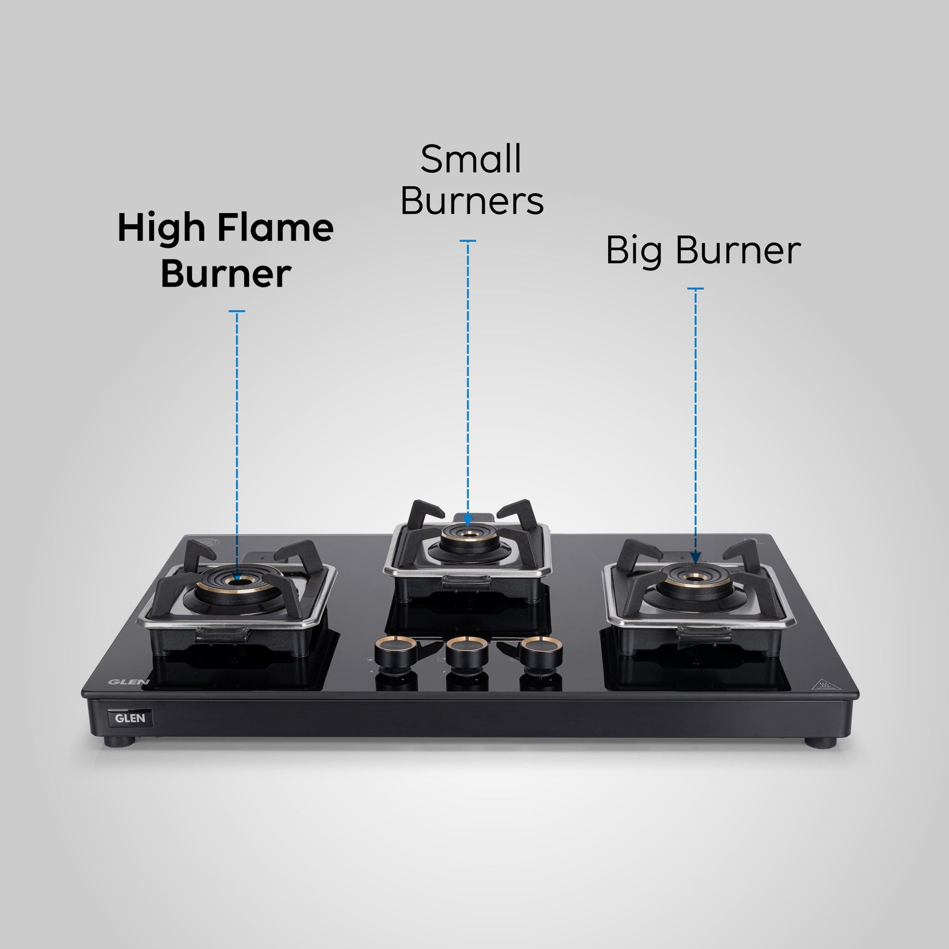 GLEN 3 Burner Swift Glass Gas Stove with Multi Ring Forged Brass Burners (CT1038GTBLSWIFT)