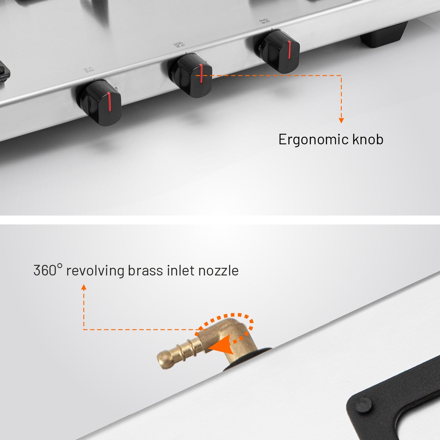 - Equipped with 3 Different Forged brass burners: 1 high flame, 1 big and 1 small burner for diverse cooking requirements.