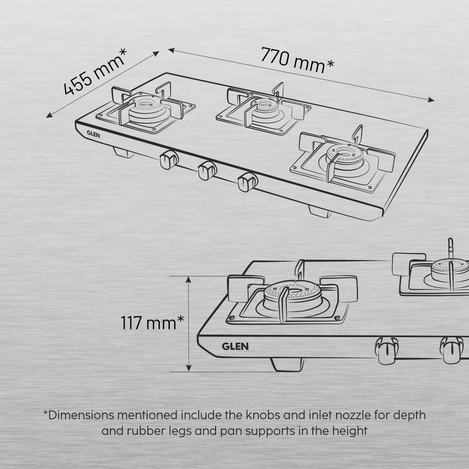 GLEN 3 Burner Ultra Tuff Stainless Steel PNG Gas Stove with Forged Brass Burner (CT1053UTSSPN)