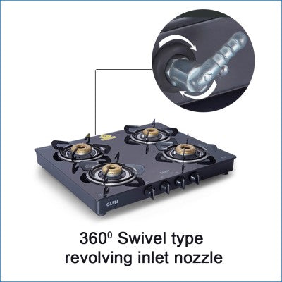 4 Burner Glass Gas Stove with Forged Brass Burner 60 CM Black (1041 GT FB BL)