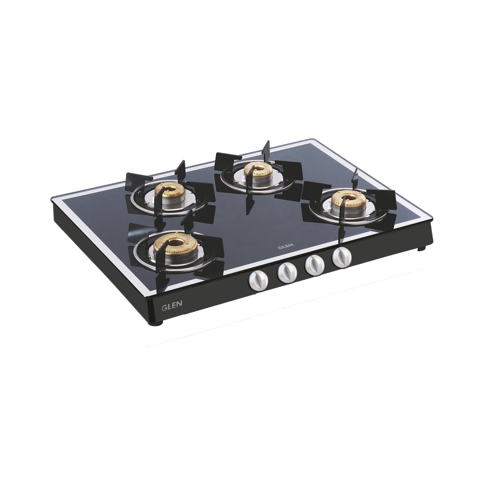 4 Burner Glass Gas Stove Mirror Finish 1 High Flame 3 Forged Brass Burner 70 CM Black (1048 GT FBM BL)